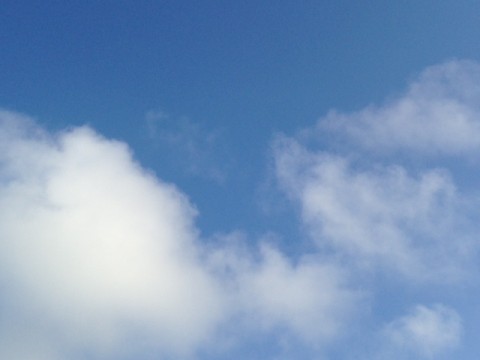 今朝は晴れて、青空に小さな雲が所々浮かんでいます。