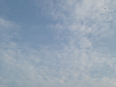 今朝は薄い雲の広がる空で、薄雲を通して陽が射してきています。