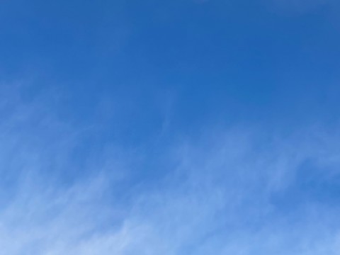 今朝は広く薄い雲が浮かんで、その間から青空が見えています。
