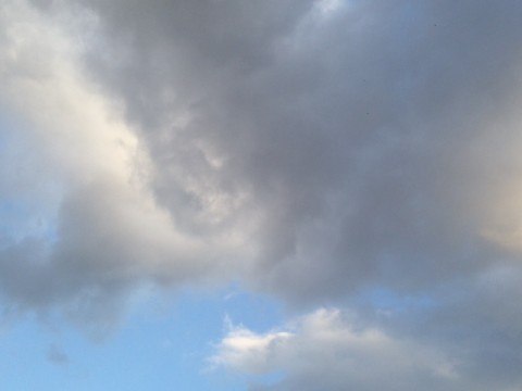 今朝は雲が多く浮かんでいるものの、雲の間から青空が広く見えています。