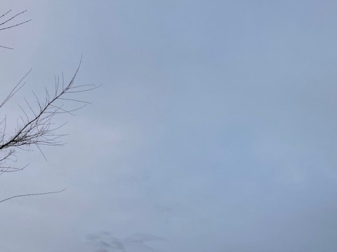 今朝は灰色の雲に覆われ、寒々とした空が広がっています。