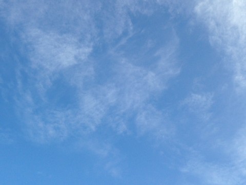 今朝は晴れて、薄っすらと雲が浮かぶ青空が広がっています。