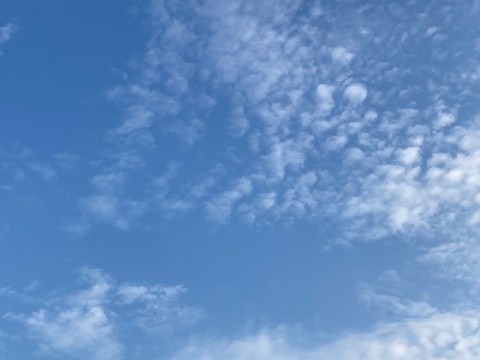 今朝は青空に広くまばらな雲が浮かんでいます