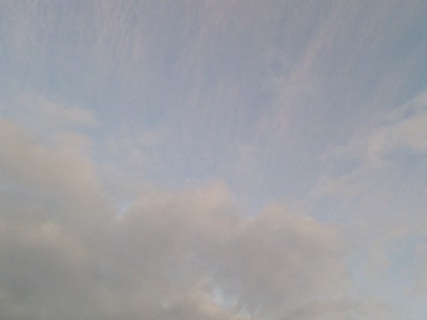 今朝は雲が多く浮かんでいるものの、その間から陽が射しています。