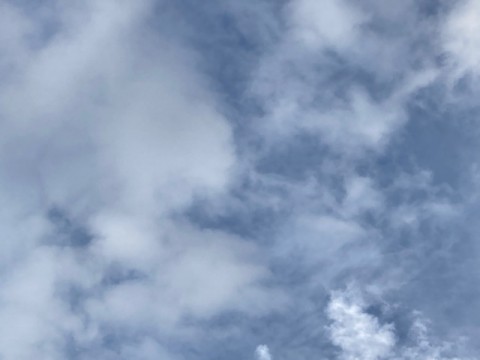 今朝も雲が多く浮かんで、朝日を遮っています。
