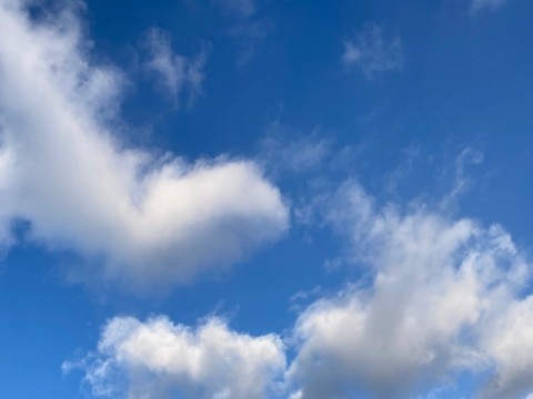 今朝は小さな雲が所々に浮かんでいますが、広く青空が見えて、明るい朝です。