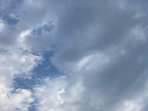 今朝も雲が多く浮かんでいるものの、雲の間から朝日が射しています。