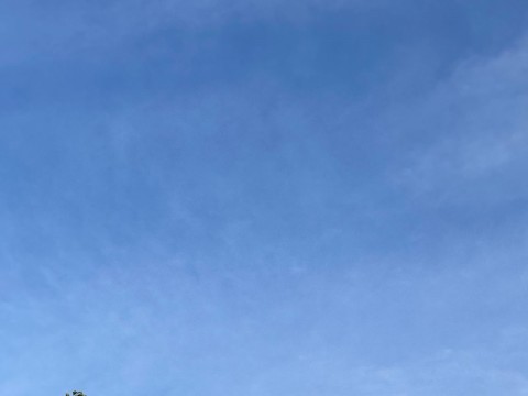 今朝はよく晴れて、雲の少ない青空が広がっています。