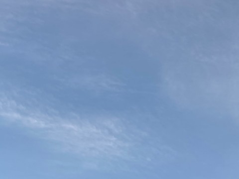 今朝は晴れて、薄雲の浮かぶ青空が広がっています。