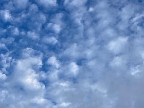 今朝は雨があがって、うろこ状の雲が浮かんでいます。