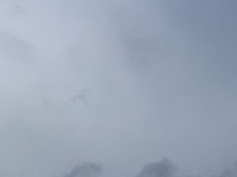 雲に覆われ、ポツポツと雨が降る朝