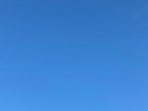 今朝も晴れて青空が広がり、朝日が差しています。