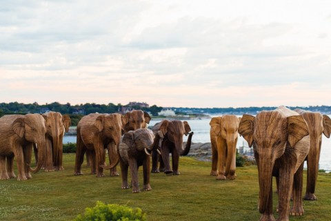 米ロードアイランド州ニューポートのクリフウォークに展示された、100体の等身大のゾウの彫刻による移動式インスタレーションです。