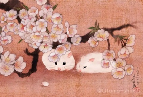 デジタルで日本画風に描くハムスターの絵画 / Otama-shimai