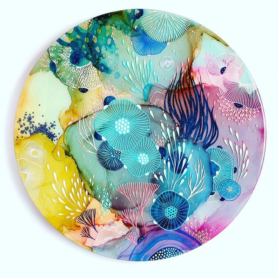 Dreamy Aquatic Ecosystems Visualized in Vibrant Mixed-Media Paintings