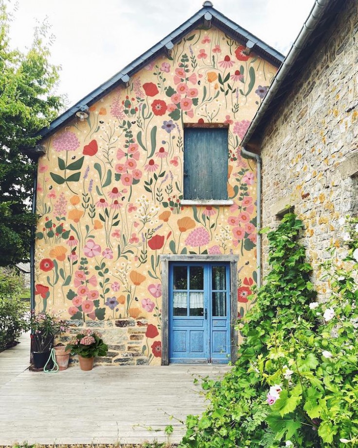 さんが、実際の建物の写真をもとに、デジタル加工により壁に花柄模様を描いた作品です。世界各地の一軒家やアパートの写真に、Photoshopで加工して壁に鮮やかな花柄模様を描き、町並みを独自の解釈で再考しています。