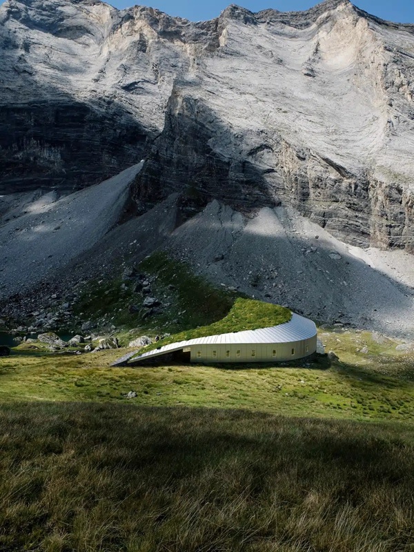 フランス・ピレネー国立公園に建設予定の新しい山小屋のデザイン案です。建築会社 Snohetta が設計。2027年に完成予定。10年前に火災で焼失した山小屋の跡地に建てられる新しい山小屋は、環境保護の方針から、リサイクルされたアルミニウムの外装や木材を使用したコンパクトなデザインながら、ハイカーたちによって居心地の良い空間となるよう設計されています。