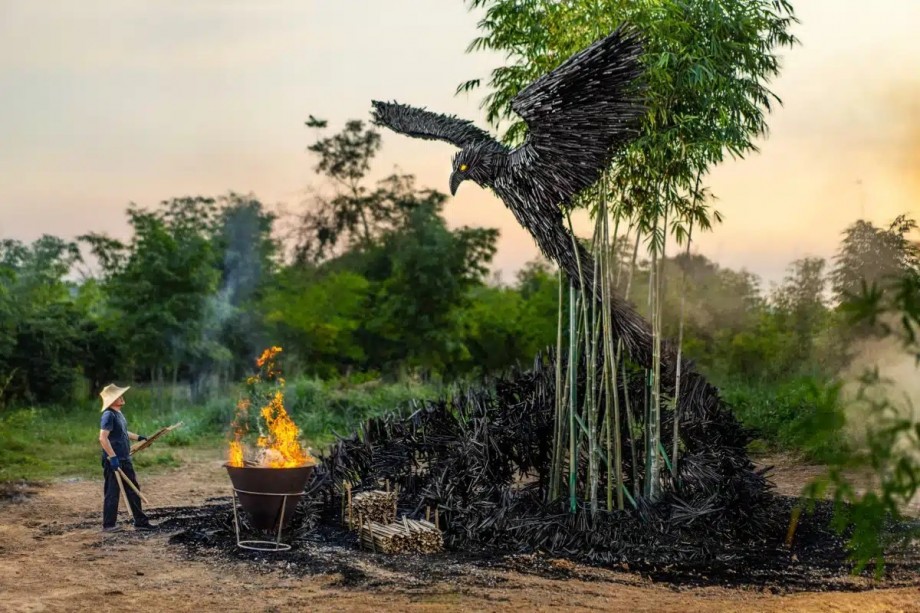 バイオ炭で制作された巨大なフェニックスの彫刻 / Benjamin Von Wong
