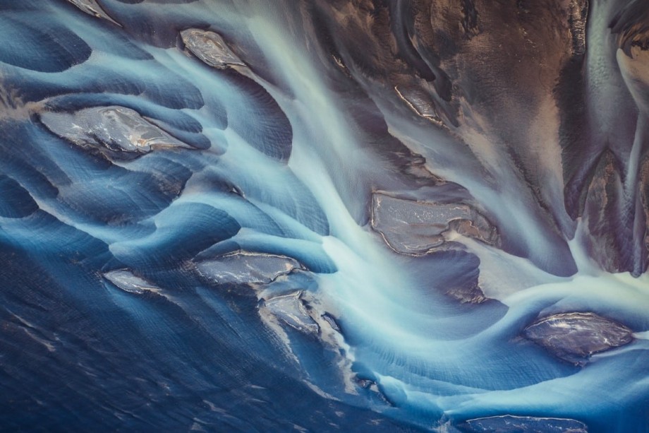 アイスランドの氷河から流れる川を撮影した抽象的で美しい空中写真 / Jan Erik Waider
