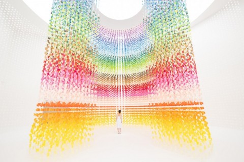 さんが、上海のCSSCパビリオンで開催された、化粧品ブランドLANCOME(ランコム)の展示会で手がけたインスタレーション作品「100色の蝶」です。約4万の色とりどりの蝶が空高く舞い上がり、円形に空間を埋め尽くすように構成し、美と永遠を抽象的に表現しています。