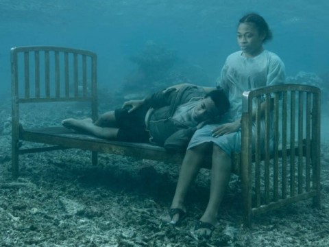 南太平洋の海面上昇の危機を伝える水中で過ごす島民たちの写真 / Nick Brandt