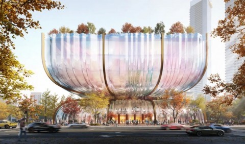 韓国ソウルの有名な百貨店「ハンファ・ギャラリア(Hanwha Galleria)」を再構築する設計コンペで勝利した、英ロンドンの建築事務所 Heatherwick Studio のデザイン案です。砂時計のような形状と波打つようなガラスの外壁によるツイン・ビルとする計画。伝統的な内向きのショッピングセンターとは異なり、ソウル市民が出会い、買い物をし、まちを楽しむための新しい庭のような空間を提供します。