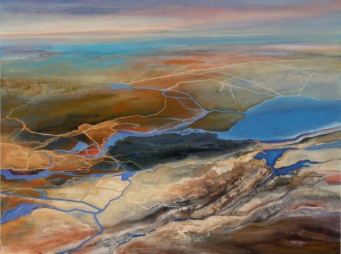 空撮写真のように雄大な自然を描いた油彩画 / Philip Govedare