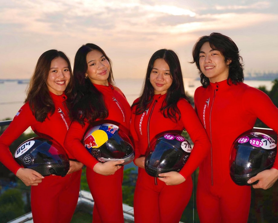 インドア・スカイダイビング世界大会で優勝したシンガポール・チームのパフォーマンス