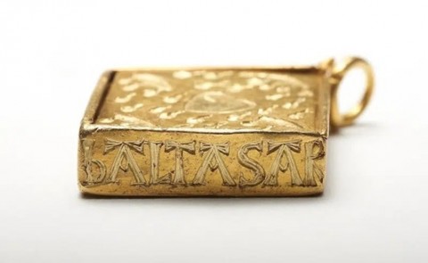 2009年当時、イギリス・エセックスに住む4歳の少年 James Hyatt君が見つけた中世の金のペンダントです。父親の金属探知機で遊んでいたところ、機械が激しくビープ音を鳴らし始め、二人で地中深く掘り進むと、500年以上前の16世紀に作られたとされるペンダントを発見。表面にはキリストが描かれ、東方の三博士(Melchior、Balthasar、Casper)の名前などが刻まれています。2012年に大英博物館に購入され、保存修復作業が行われました。