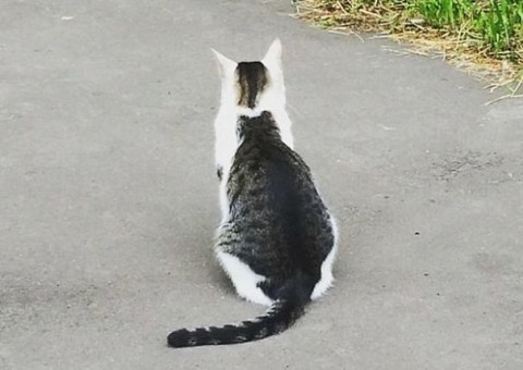背中の模様が、猫の後ろ姿に似ていて、背中にもう1匹いるかのように見える可愛い猫です。