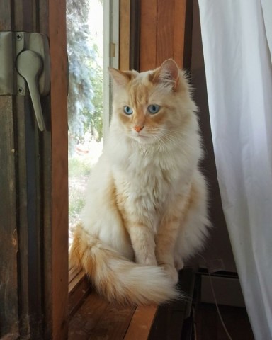ソチという名のオスのシベリア猫に会いに来るという野生動物たちとの交流の場面を撮影したものです。