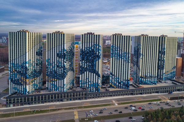 葛飾北斎の巨大壁画が描かれたモスクワの団地 / Etalon City