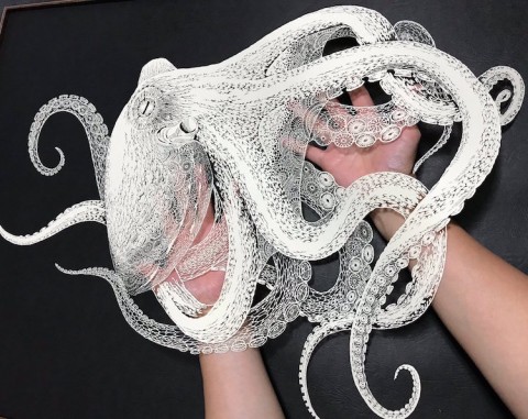 Japanese Artist Hand-Cuts Intricate Octopus From Single Sheet of Paper