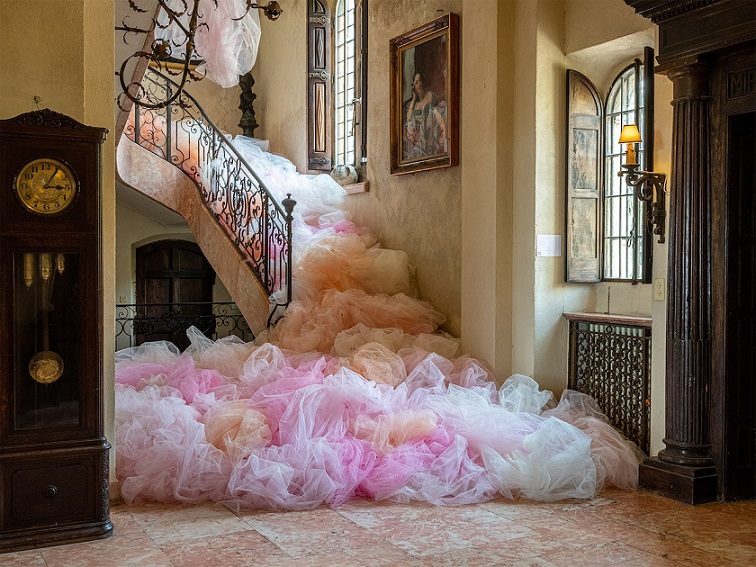 フランスの古城を大量のチュールの布で飾ったインスタレーション / Ana Maria Hernando