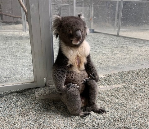 背筋をピンと伸ばして座る日本のコアラ / @englandhill_zoo