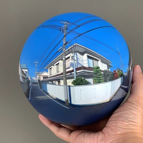 Artist Paints Spherical Canvases with Photorealistic Scenes of Japanese Suburbia