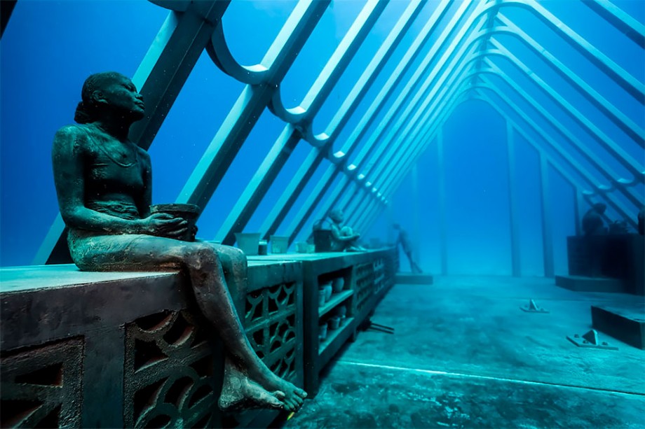 英国人芸術家 Jason DeCaires Taylor さんが手がけた、アートでサンゴ礁を救うプロジェクトの一つ。海底にモニュメントや様々な人の像を展示し、アートをきっかけに、サンゴ礁内で起こっている問題への意識を高める海中美術館です。