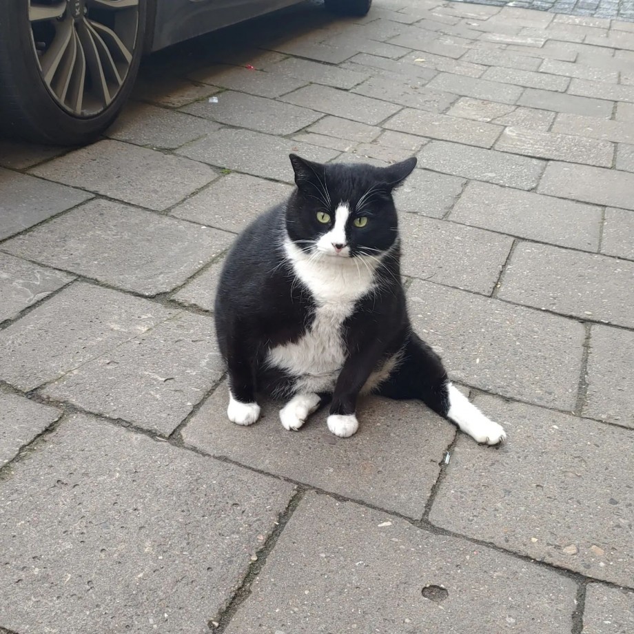 ポーランドのシュチェチン市で新たな観光名所になった、恰幅のよいタキシード柄の野良猫ガツェック(
