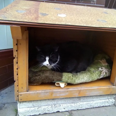 7年ほど前から市内の通りに現れて、通りがかった人々がエサを与え始めた結果、丸々とした猫に成長。通りの傍らには木製の小さな小屋が建てられ、現在はそこを寝床にして生活しています。