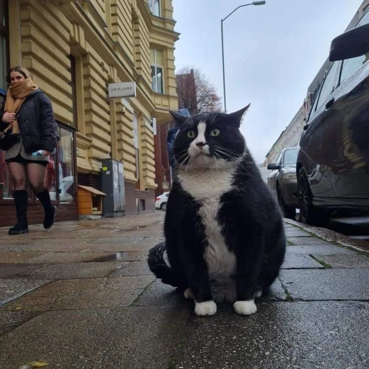 Chunky Tuxedo Cat Is a 5-Star Tourist Attraction in a Medieval Polish City