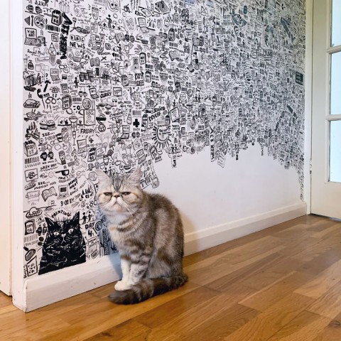 イギリスのアーティスト Viktorija O さんが、新型コロナによるロックダウン中、自室の壁に毎日の出来事を描いた絵日記です。2020年3月25日から始め、その日その日の出来事を描き込み、壁一面を埋め尽くしています。