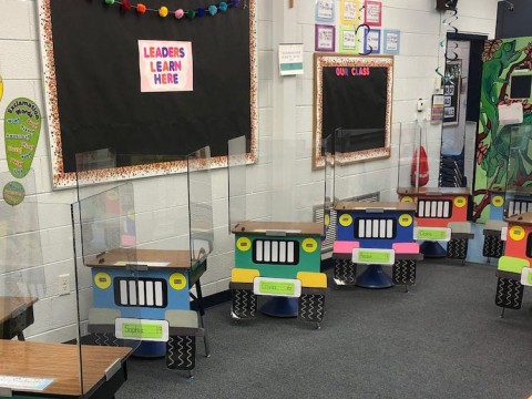 Teachers Transform Students’ Desks Into “Jeeps” With Plastic Shields to Help Ensure Social Distancing