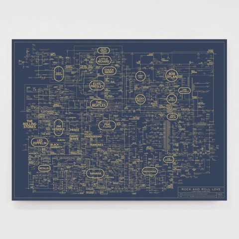This Intricate Blueprint Poster Charts the Golden History of Rock and Roll Music