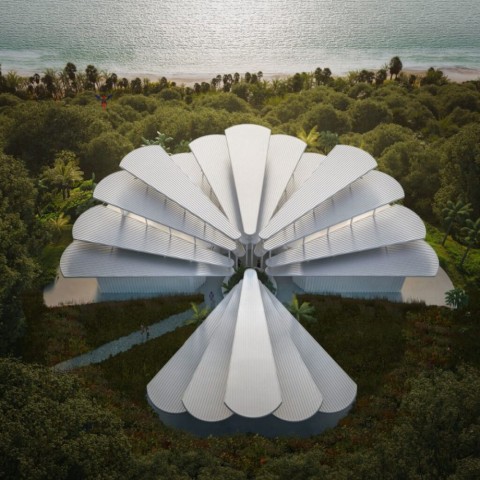 コスタリカの海を見渡せる丘に計画されている鳥をモチーフにした個人住宅です。