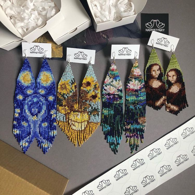有名な絵画をモチーフにしたビーズのイヤリング / Namystynky