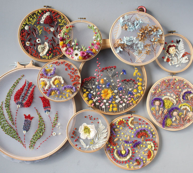 Artist Embroiders Beautiful Dried Flower Arrangements Directly Onto Tulle