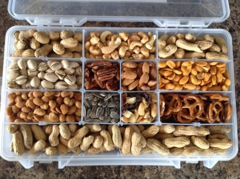 釣り道具を入れる箱にナッツやクラッカーなどおつまみを入れたスナックルボックス(Snackle Box)