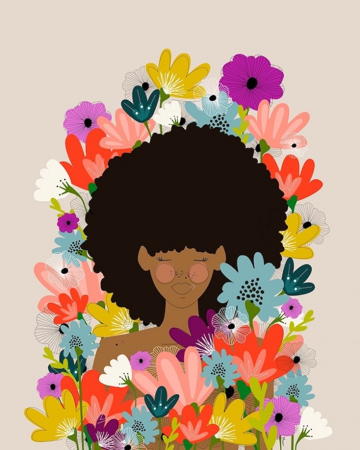 花に包まれた黒人女性を描いたデジタルイラスト / Shae