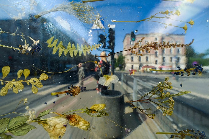 ポーランドの Dabrowskiego広場にあるトラム停留所に施した花の装飾です。地元の学生 Dominika Cebula さんのプロジェクト。