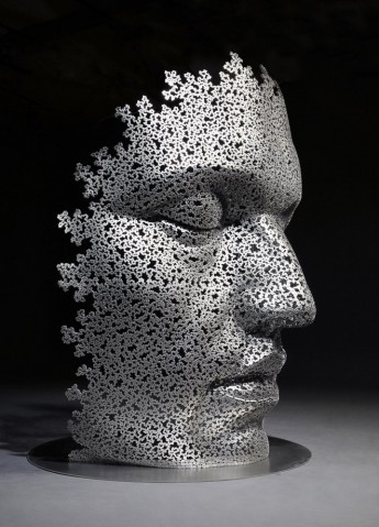 自転車チェーンや鎖で作った巨大な人物の顔の彫刻/ Young-Deok Seo